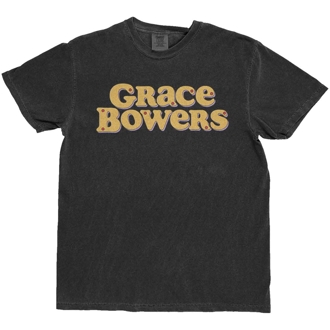 This black tee features a yellow Grace Bowers graphic logo on the front. Tee is pre-shrunk 100% ringspun cotton.